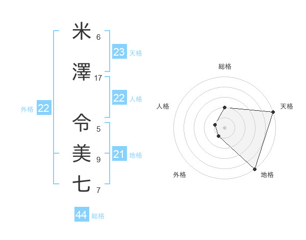 米澤 令美七さんを姓名の画数から五運を鑑定