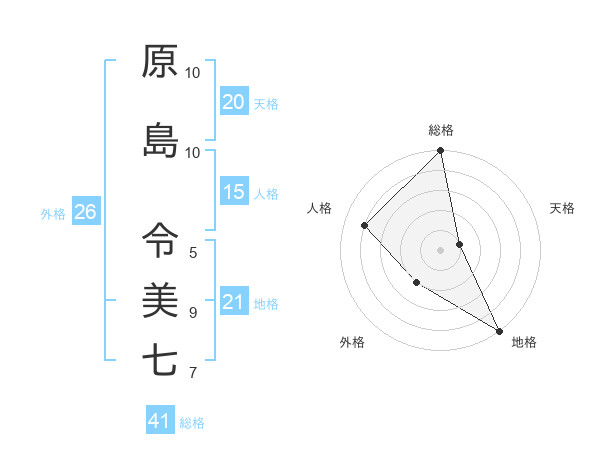 原島 令美七さんの総格は41画の5点!