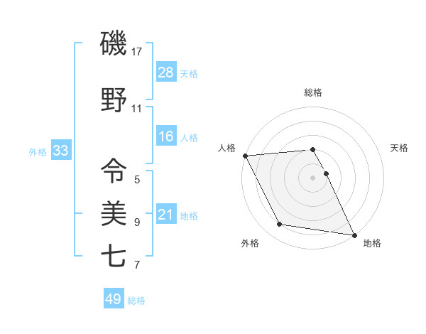 磯野 令美七さんを姓名の画数から五運を鑑定