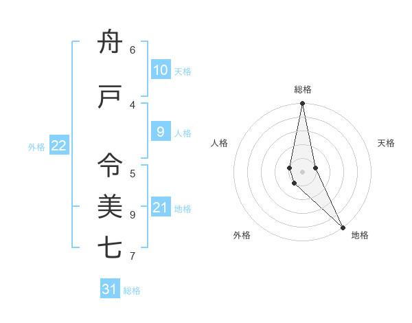 舟戸 令美七さんを姓名の画数から五運を鑑定