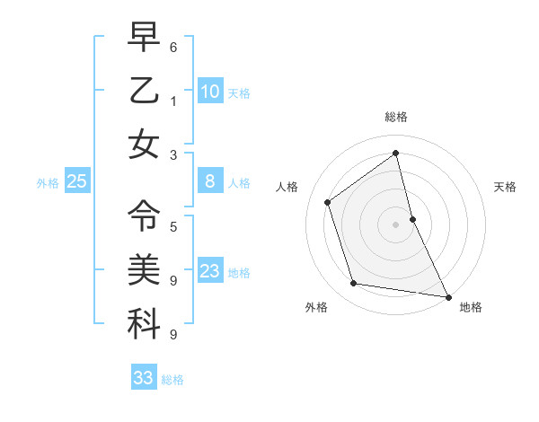 早乙女 令美科さんを姓名の画数から五運を鑑定