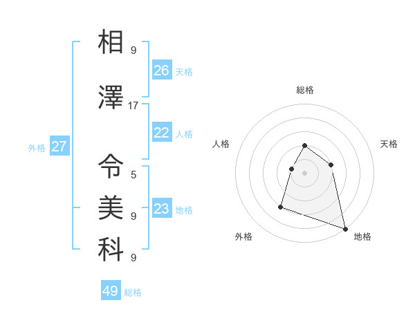 相澤 令美科さんを姓名の画数から五運を鑑定