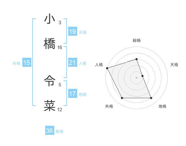 小橋 令菜さんを姓名の画数から五運を鑑定