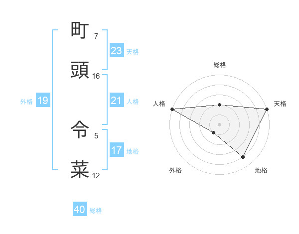 町頭 令菜さんの総格は40画の2点!