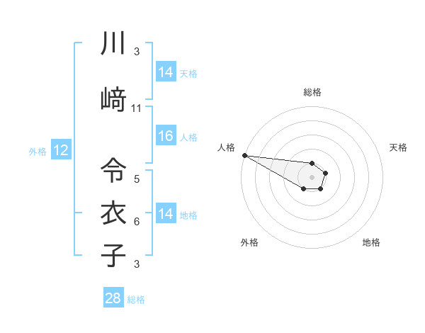 川﨑 令衣子さんを姓名の画数から五運を鑑定