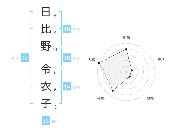 日比野 令衣子さんを姓名の画数から五運を鑑定