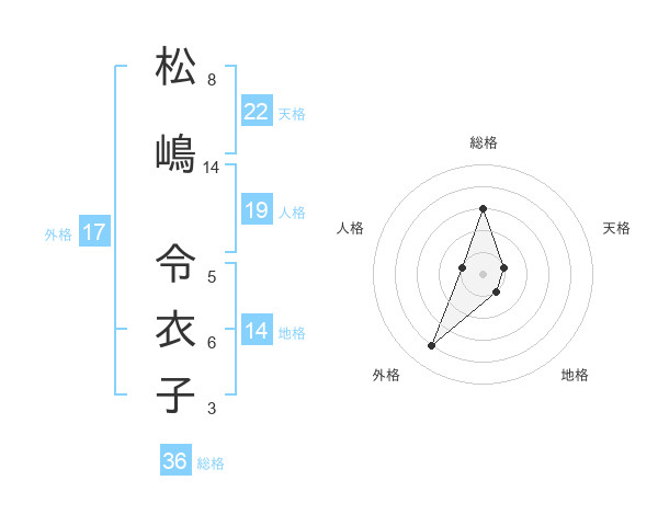 松嶋 令衣子さんを姓名の画数から五運を鑑定