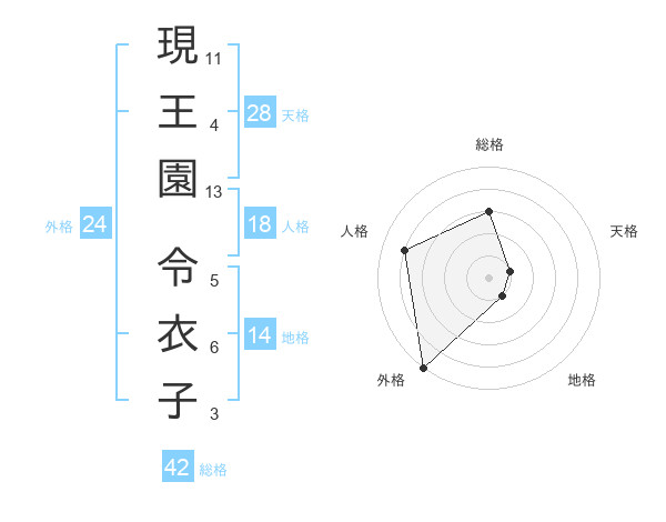 現王園 令衣子さんを姓名の画数から五運を鑑定