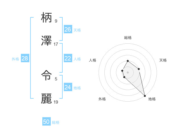 柄澤 令麗さんを姓名の画数から五運を鑑定