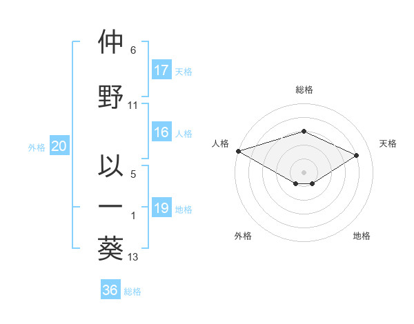 仲野 以一葵さんを姓名の画数から五運を鑑定