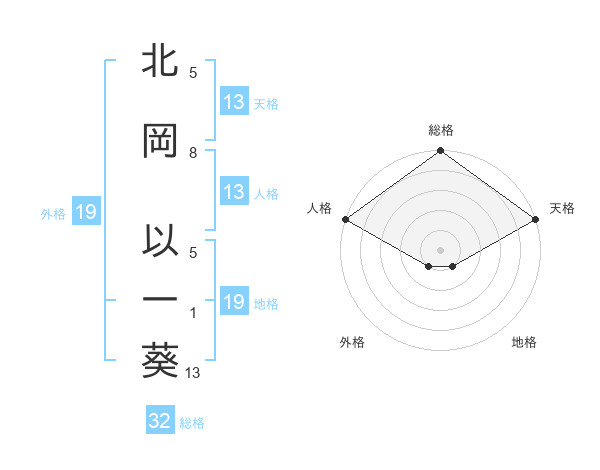 北岡 以一葵さんの天格は13画の5点!