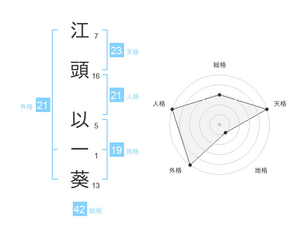 江頭 以一葵さんを姓名の画数から五運を鑑定