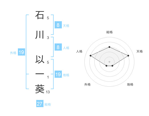 石川 以一葵さんを姓名の画数から五運を鑑定