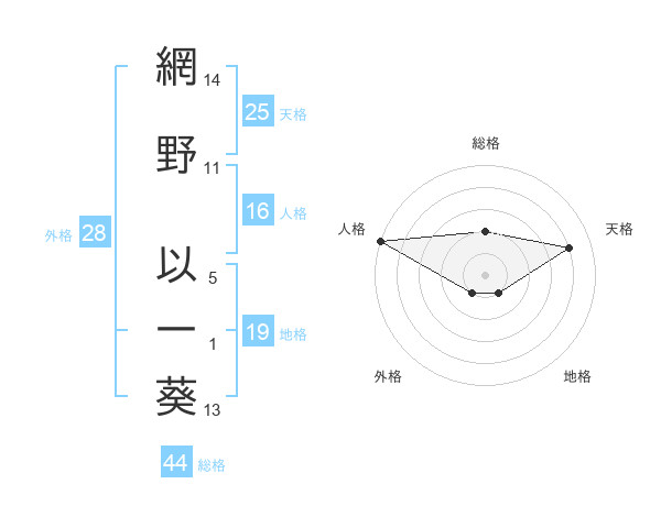 網野 以一葵さんを姓名の画数から五運を鑑定