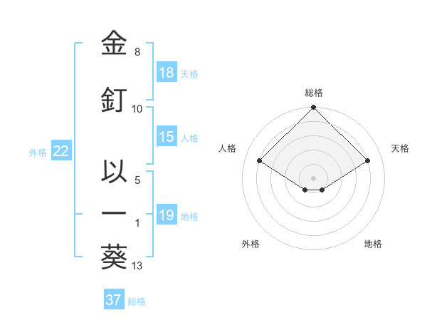 金釘 以一葵さんを姓名の画数から五運を鑑定