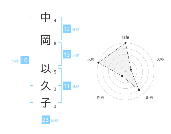 中岡 以久子さんを姓名の画数から五運を鑑定