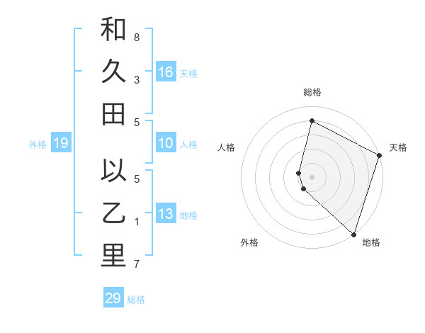 和久田 以乙里さんを姓名の画数から五運を鑑定