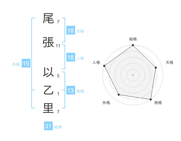 尾張 以乙里さんを姓名の画数から五運を鑑定