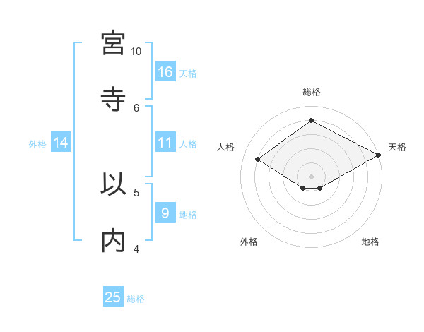 宮寺 以内さんを姓名の画数から五運を鑑定