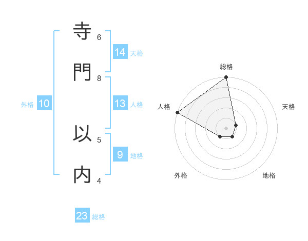 寺門 以内さんを姓名の画数から五運を鑑定