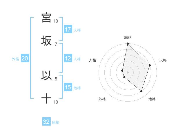 宮坂 以十さんを姓名の画数から五運を鑑定