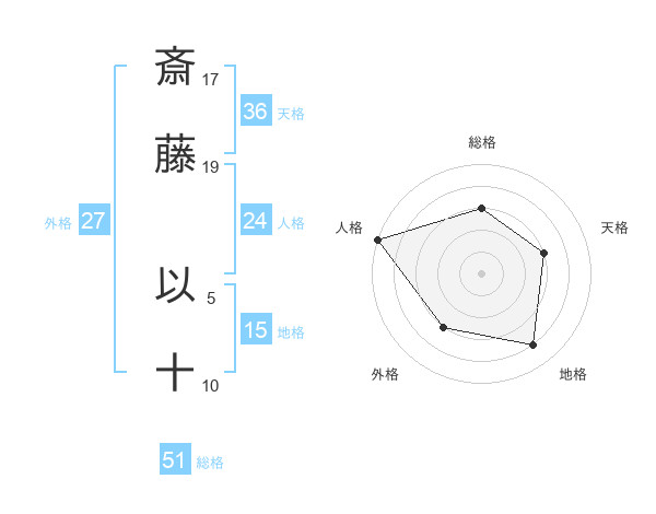斎藤 以十さんを姓名の画数から五運を鑑定