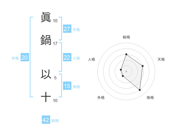 眞鍋 以十さんを姓名の画数から五運を鑑定