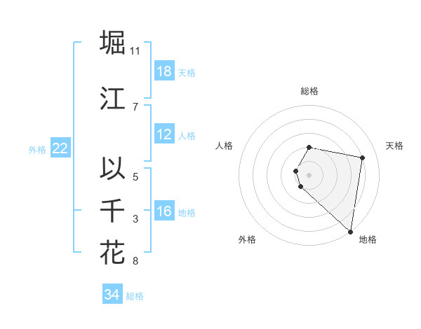 堀江 以千花さんを姓名の画数から五運を鑑定