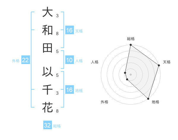大和田 以千花さんを姓名の画数から五運を鑑定
