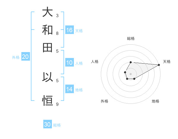 大和田 以恒さんを姓名の画数から五運を鑑定