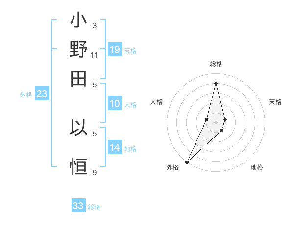 小野田 以恒さんを姓名の画数から五運を鑑定