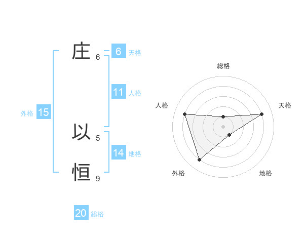 庄 以恒さんを姓名の画数から五運を鑑定