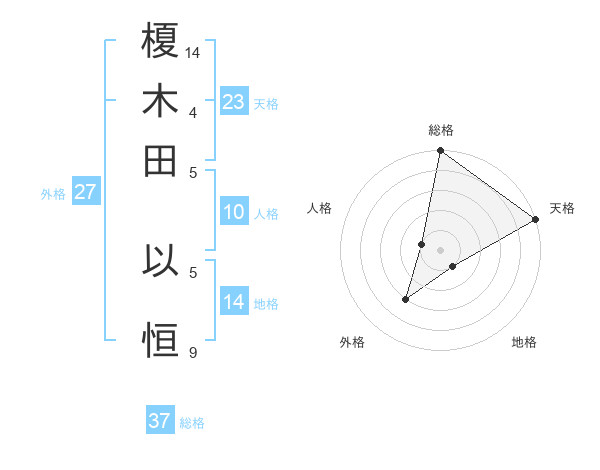 榎木田 以恒さんを姓名の画数から五運を鑑定