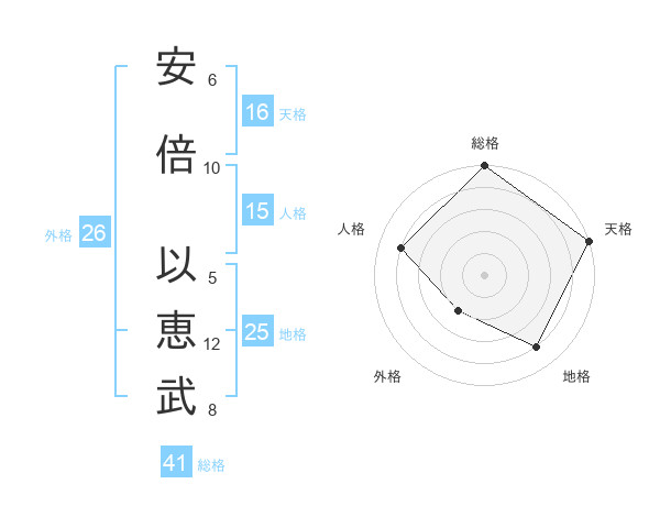安倍 以恵武さんを姓名の画数から五運を鑑定