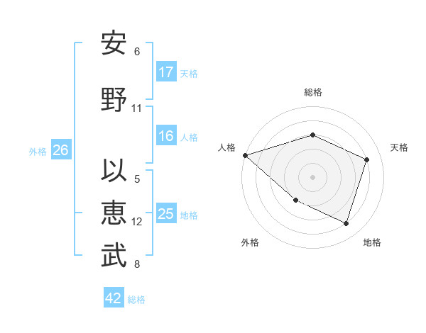 安野 以恵武さんを姓名の画数から五運を鑑定