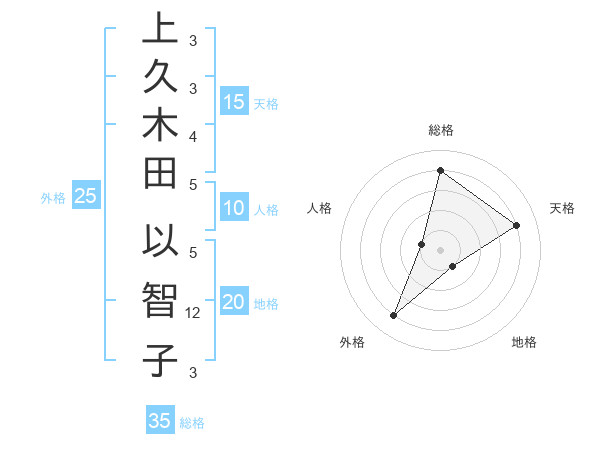 上久木田 以智子さんを姓名の画数から五運を鑑定