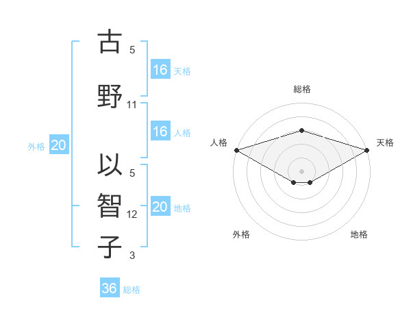 古野 以智子さんの天格は16画の5点!