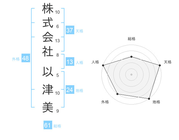 株式会社 以津美さんの総格は61画の3点!