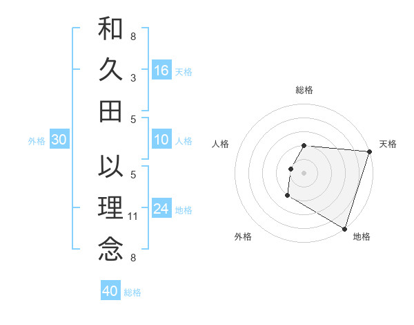 和久田 以理念さんを姓名の画数から五運を鑑定