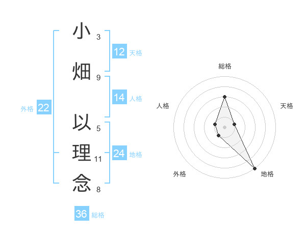 小畑 以理念さんを姓名の画数から五運を鑑定