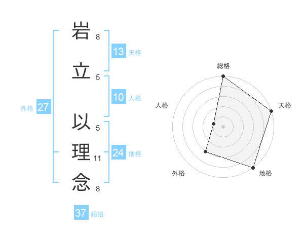 岩立 以理念さんを姓名の画数から五運を鑑定