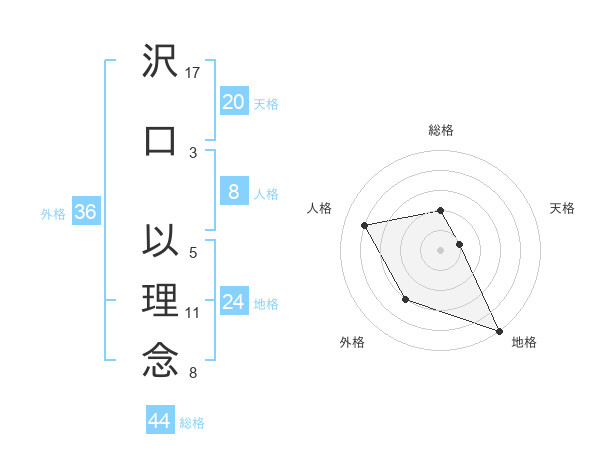 沢口 以理念さんの総格は44画の2点!