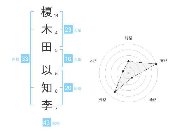 榎木田 以知李さんの天格は23画の5点!