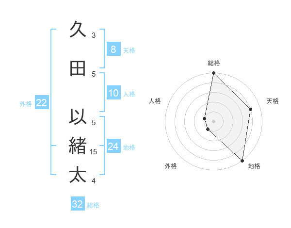 久田 以緒太さんを姓名の画数から五運を鑑定