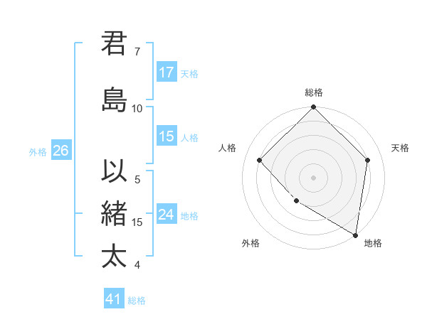君島 以緒太さんを姓名の画数から五運を鑑定
