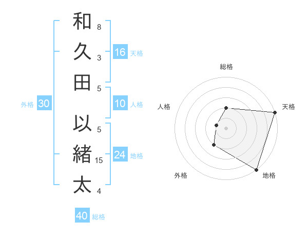 和久田 以緒太さんを姓名の画数から五運を鑑定
