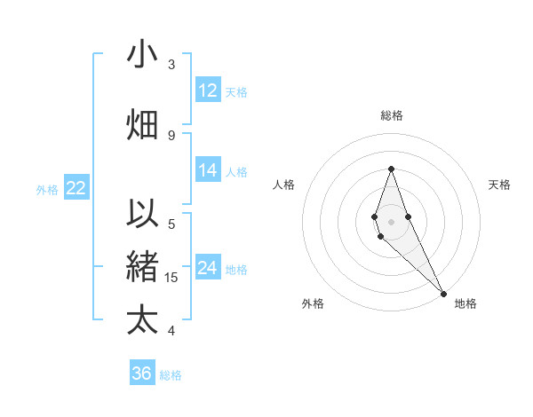 小畑 以緒太さんを姓名の画数から五運を鑑定