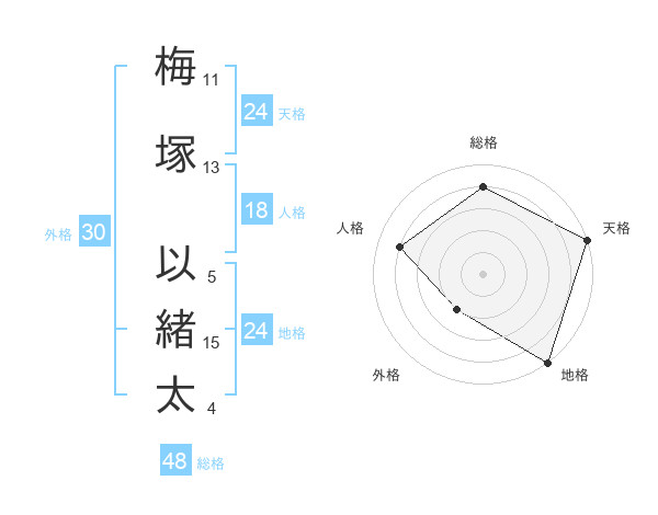 梅塚 以緒太さんを姓名の画数から五運を鑑定