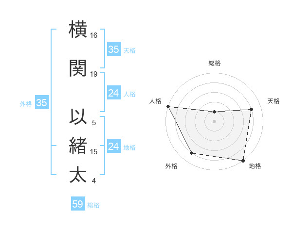 横関 以緒太さんを姓名の画数から五運を鑑定