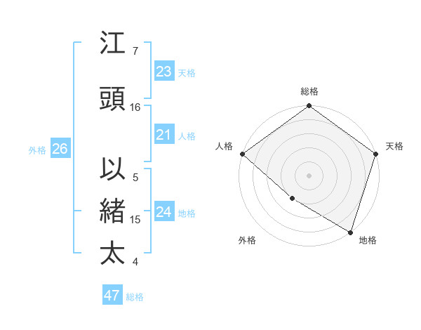 江頭 以緒太さんを姓名の画数から五運を鑑定